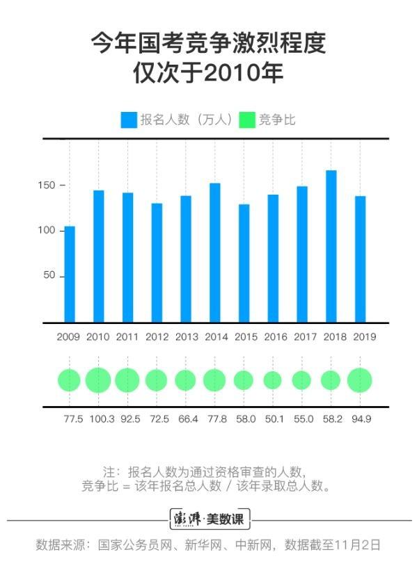 2019國(guó)家公務(wù)員考試的公共科目筆試,于12月2日在全國(guó)各地考點(diǎn)正式舉行。今年,共有137.93萬人通過了公務(wù)員考試的報(bào)名與審查,他們將競(jìng)爭(zhēng)9657個(gè)崗位。其中過審報(bào)名人數(shù)與計(jì)劃錄用人數(shù)之比約為95:1。這就意味著,從平均水平來講,每個(gè)崗位都幾乎是“百里挑一”;這樣的競(jìng)爭(zhēng)激烈程度,幾乎比去年高出一倍(58:1),在近十年中僅次于2010年(100:1)。多級(jí)泵