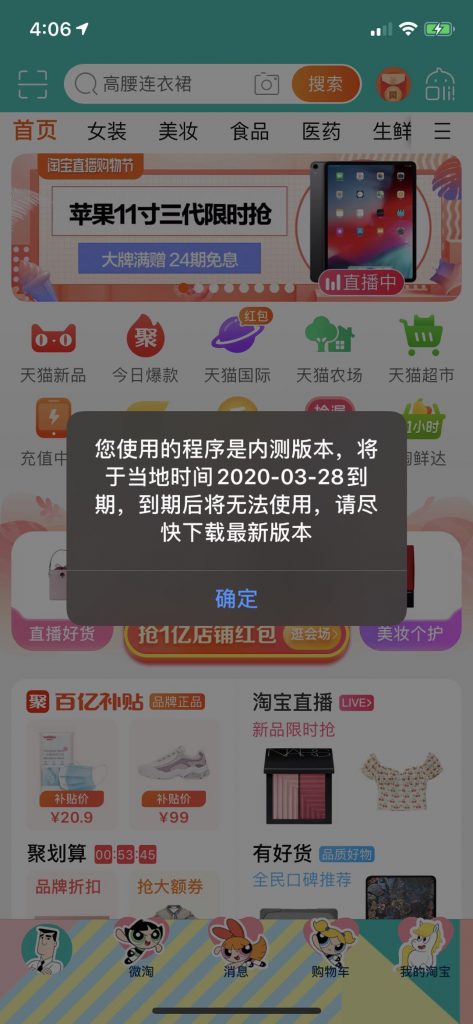 3月25日,手機(jī)淘寶iOS版本出現(xiàn)BUG,iPhone手機(jī)用戶打開淘寶APP后,會(huì)出現(xiàn)到期提示彈窗。彈窗顯示:您使用的程序是內(nèi)測(cè)版本,將于當(dāng)?shù)貢r(shí)間2020-03-28到期,到期后將無(wú)法使用,請(qǐng)盡快下載最新版本。管道泵