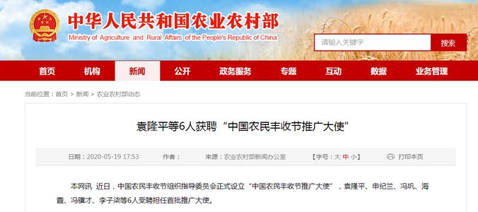 “中國農(nóng)民豐收節(jié)宣傳大使”,袁隆平、申紀(jì)蘭、馮鞏、海霞、馮驥才、李子柒等被聘為首批推廣大使。